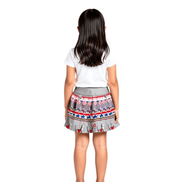 Add a fun and colorful touch to your child’s wardrobe with this Girls Printed Mini Skirt. Designed with a soft grey base, the skirt is enhanced by a lively carnival-inspired pattern showcasing playful graphics and bold colors. The cheerful design creates a standout look while maintaining everyday wearability.