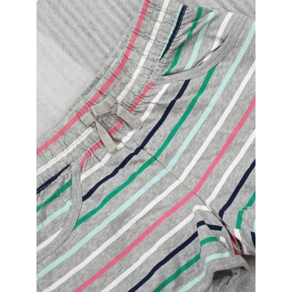 Upgrade your casual wardrobe with these versatile multi-stripe cotton shorts. Designed for comfort and ease, these shorts feature a soft, breathable fabric ideal for daily wear. The elastic waistband with an adjustable drawstring ensures a secure and flexible fit, while the side pockets add practicality. The subtle grey base combined with clean stripe detailing offers a contemporary, relaxed look perfect for lounging, outings, or summer wear.