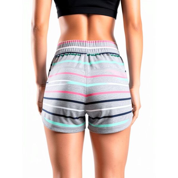 Comfortable and stylish cotton shorts featuring a modern multi-stripe design with an elastic waistband and adjustable drawstring for everyday wear.
