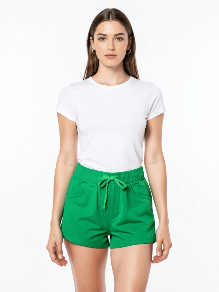 Comfortable and versatile solid green cotton shorts with an elastic waistband and adjustable drawstring, ideal for everyday wear.